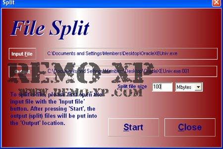 Klik Split- Klik input file dan browse file yang sobat kehendaki untuk dipecah. Di sini saya memberi contoh file oracle.